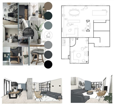 When words are not enough to express, there is a Mood board. Mood Boards are useful tools as they are ideal for effectively communicating our thoughts and ideas to the client with the arrangement of visual images, materials, texture, color, and a layout plan. To present the project to our clients, we use 3D drawings, Mood boards and material samples.